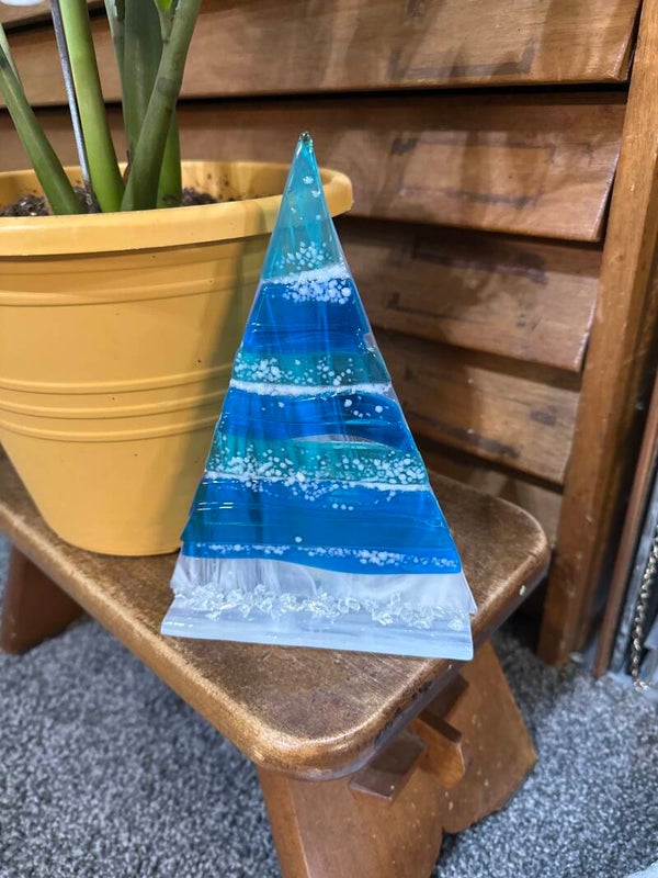 Design and glass colors may vary slightly from the picture due to the availability of glass at the time of creation. 5" wide x 7" tall, approximately