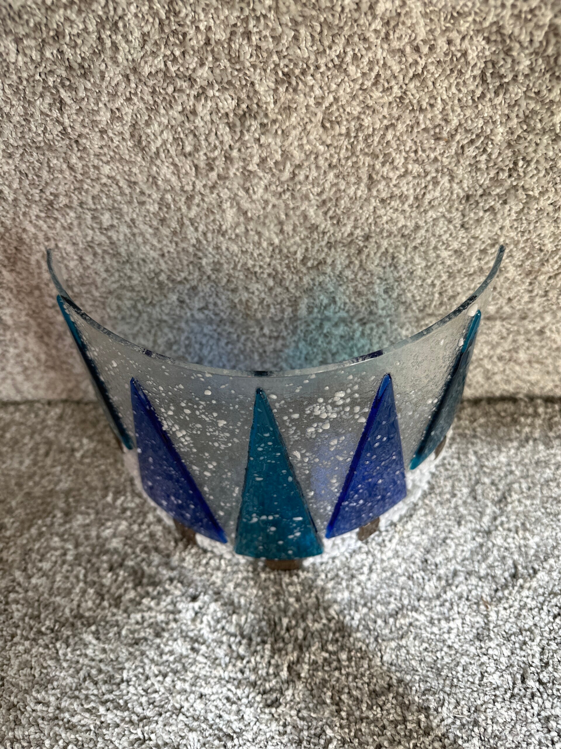 Fairy lights add a bit of whimsy to this fused glass panel. Or put a flameless candle behind it to bring out the colors of the glass. 9" x 6 1/2" x 4" approximately