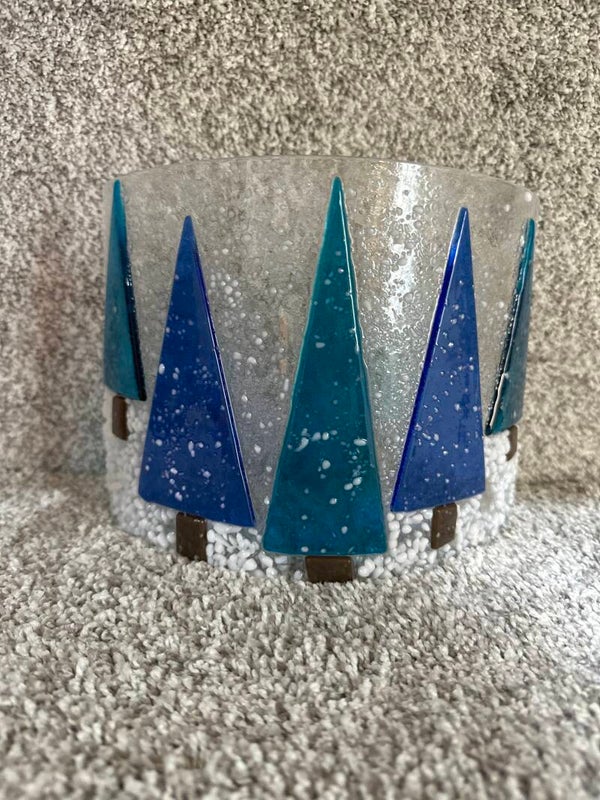 Add a touch of festive charm to your home with this curved fused glass tree panel.