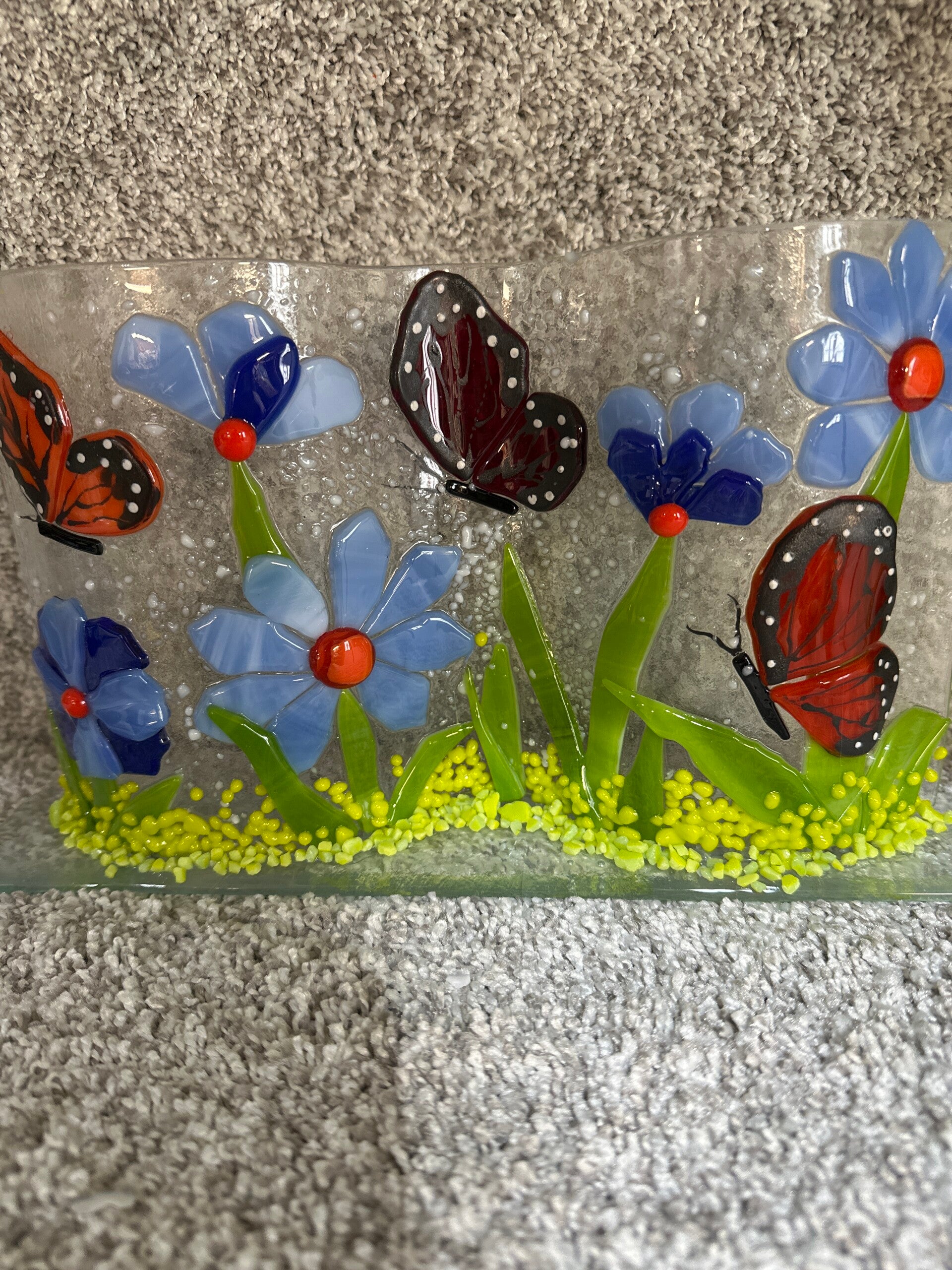 Add fairy lights around this fused glass panel or put a flameless candle behind it to lighten up the colors in the glass.