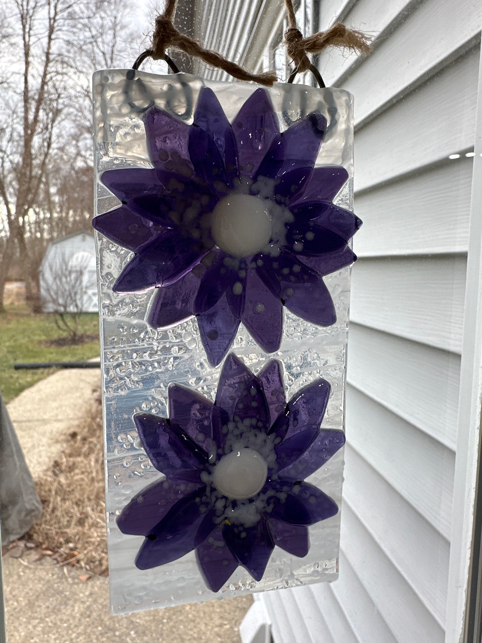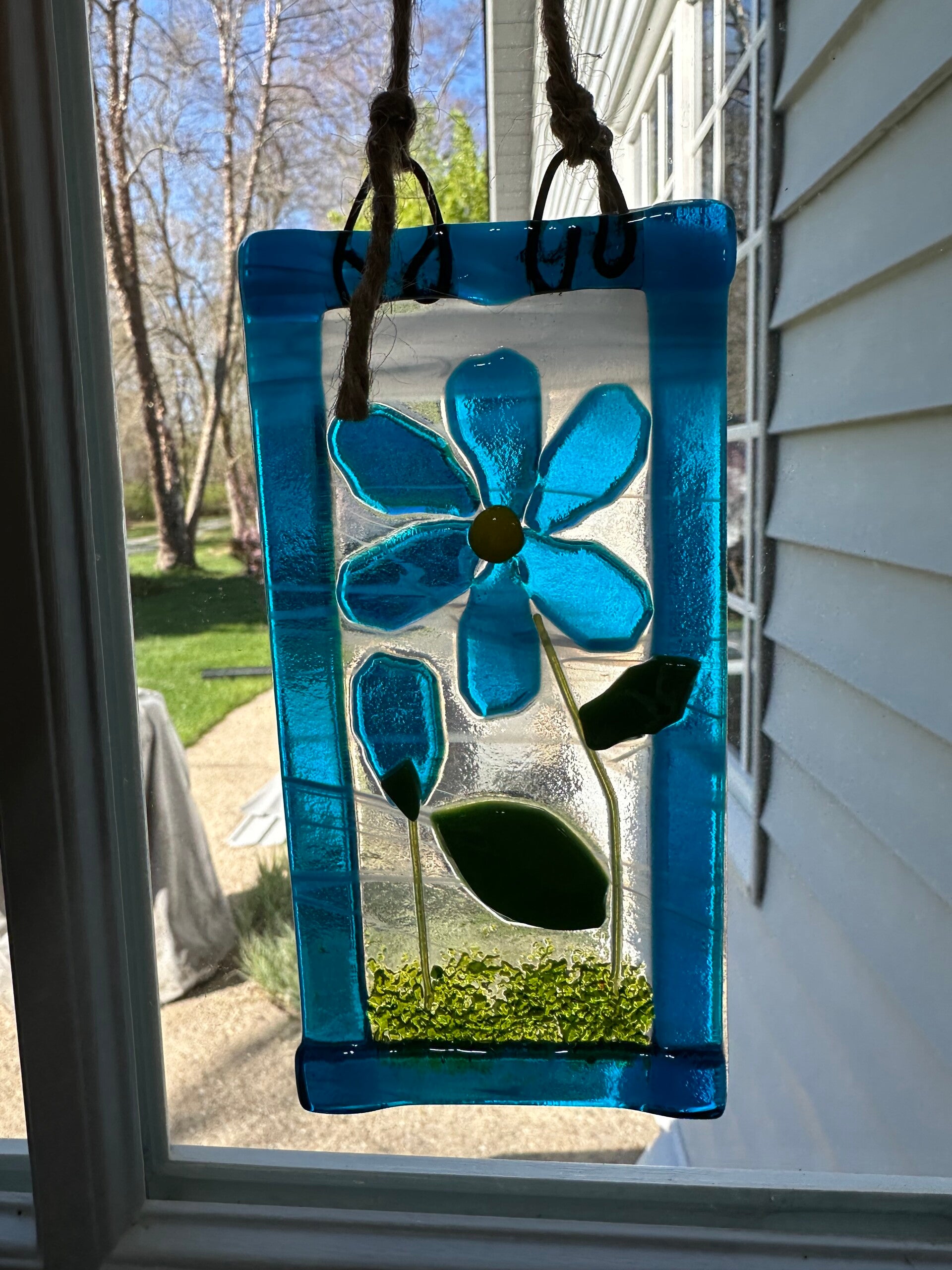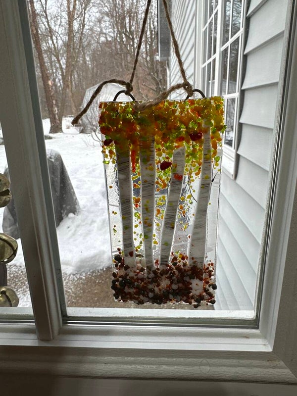 Each design varies slightly in glass colors due to glass availability or artists mood.