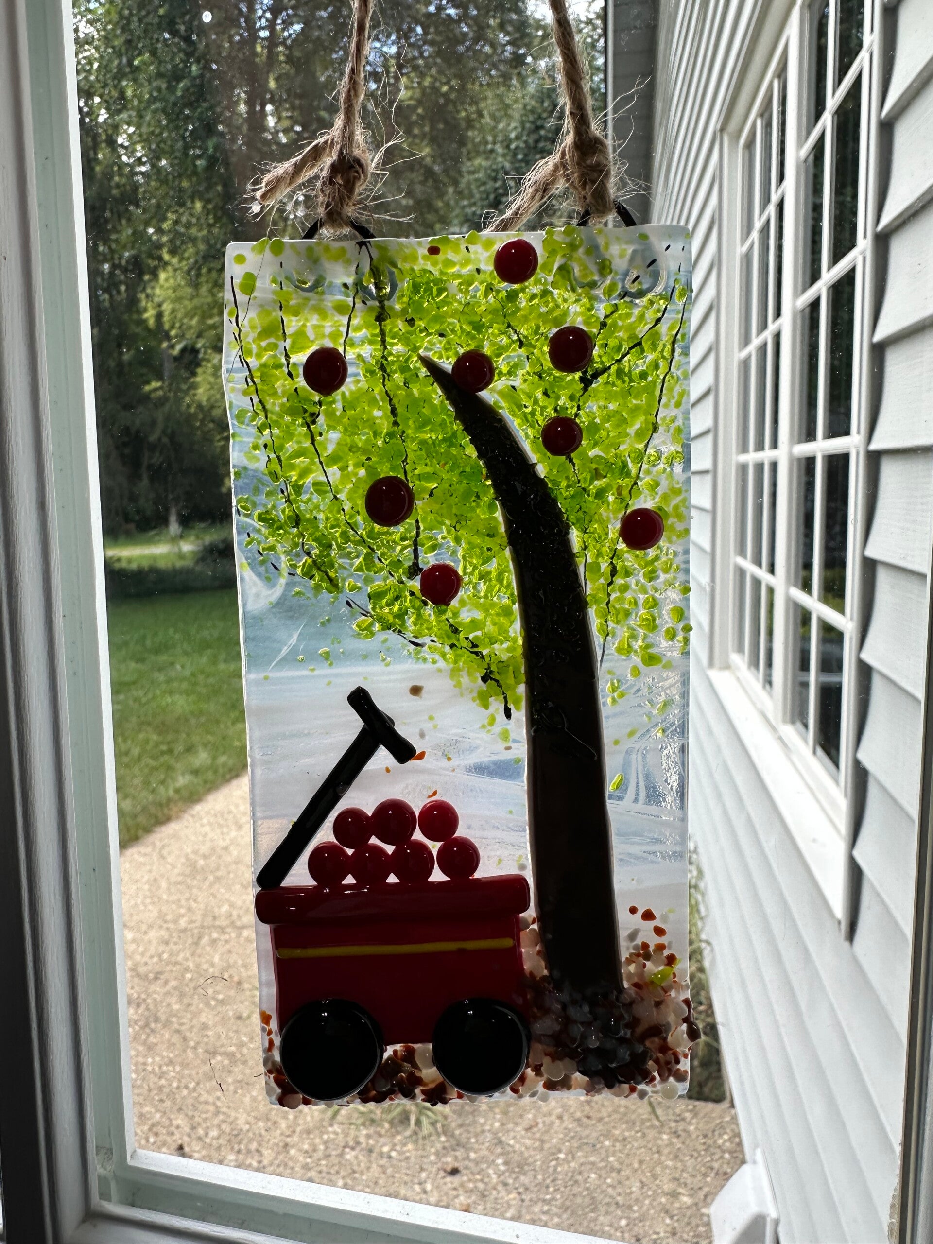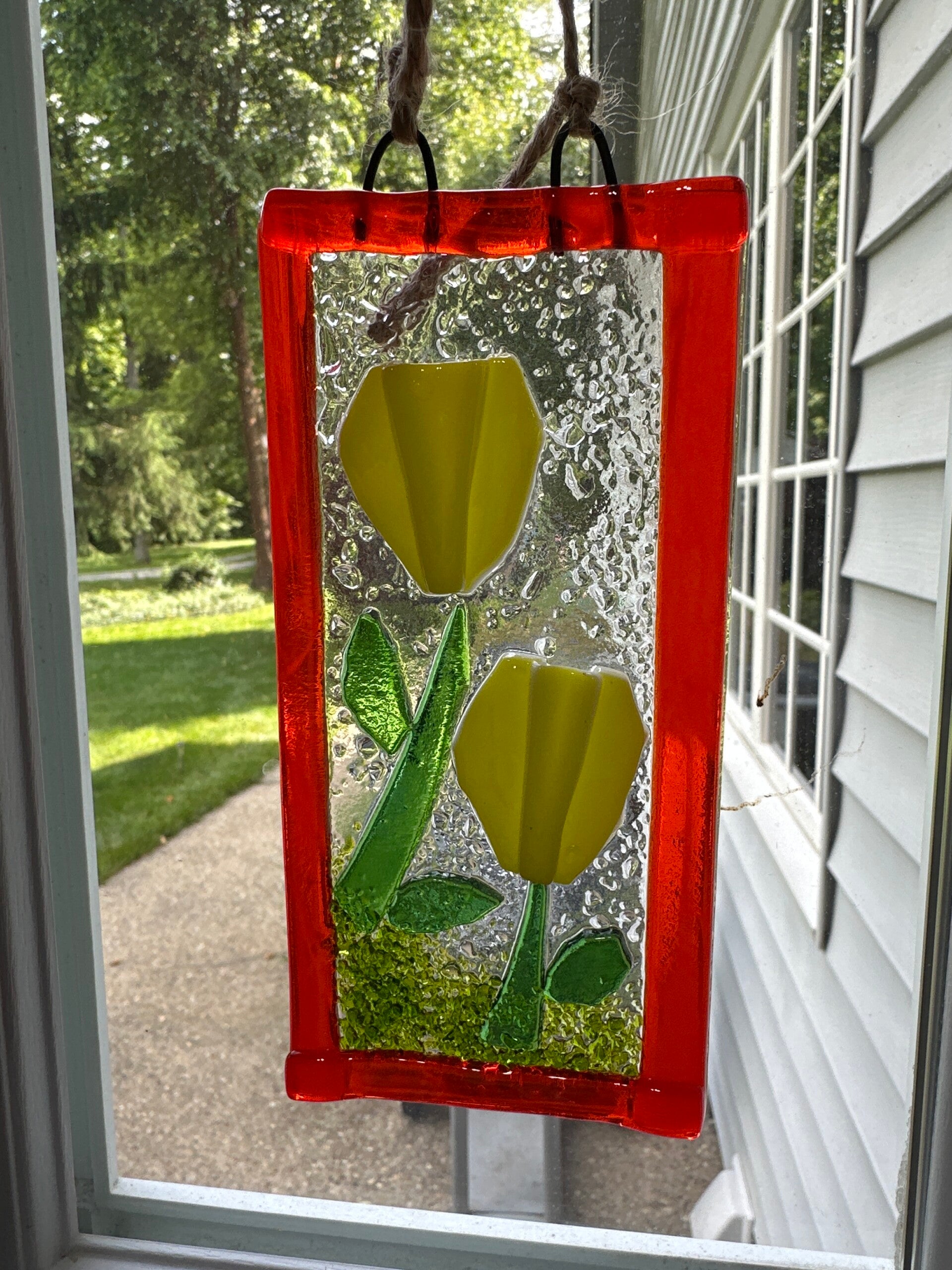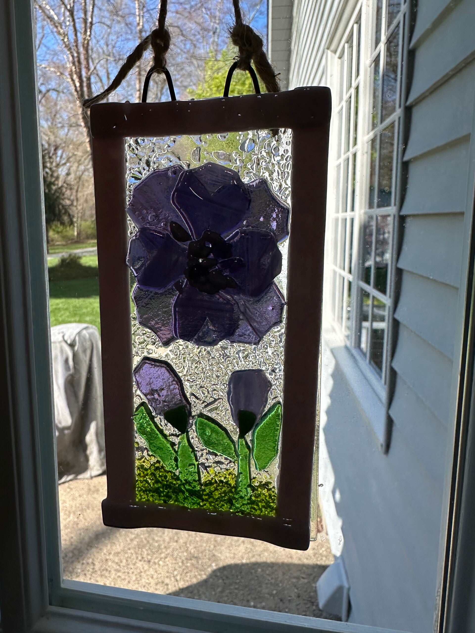 Each design varies slightly in glass colors due to glass availability or artists mood.