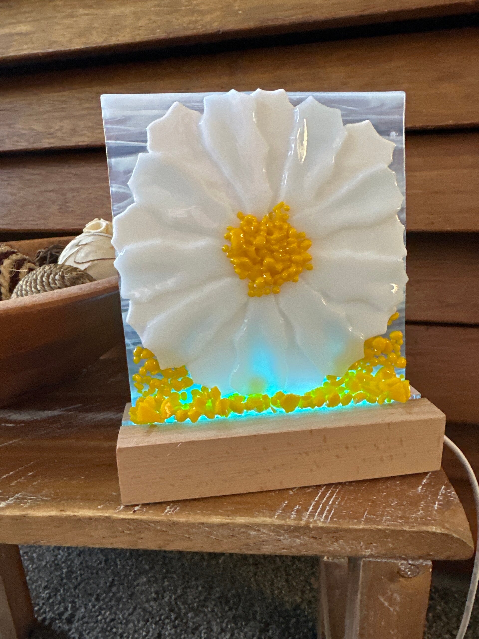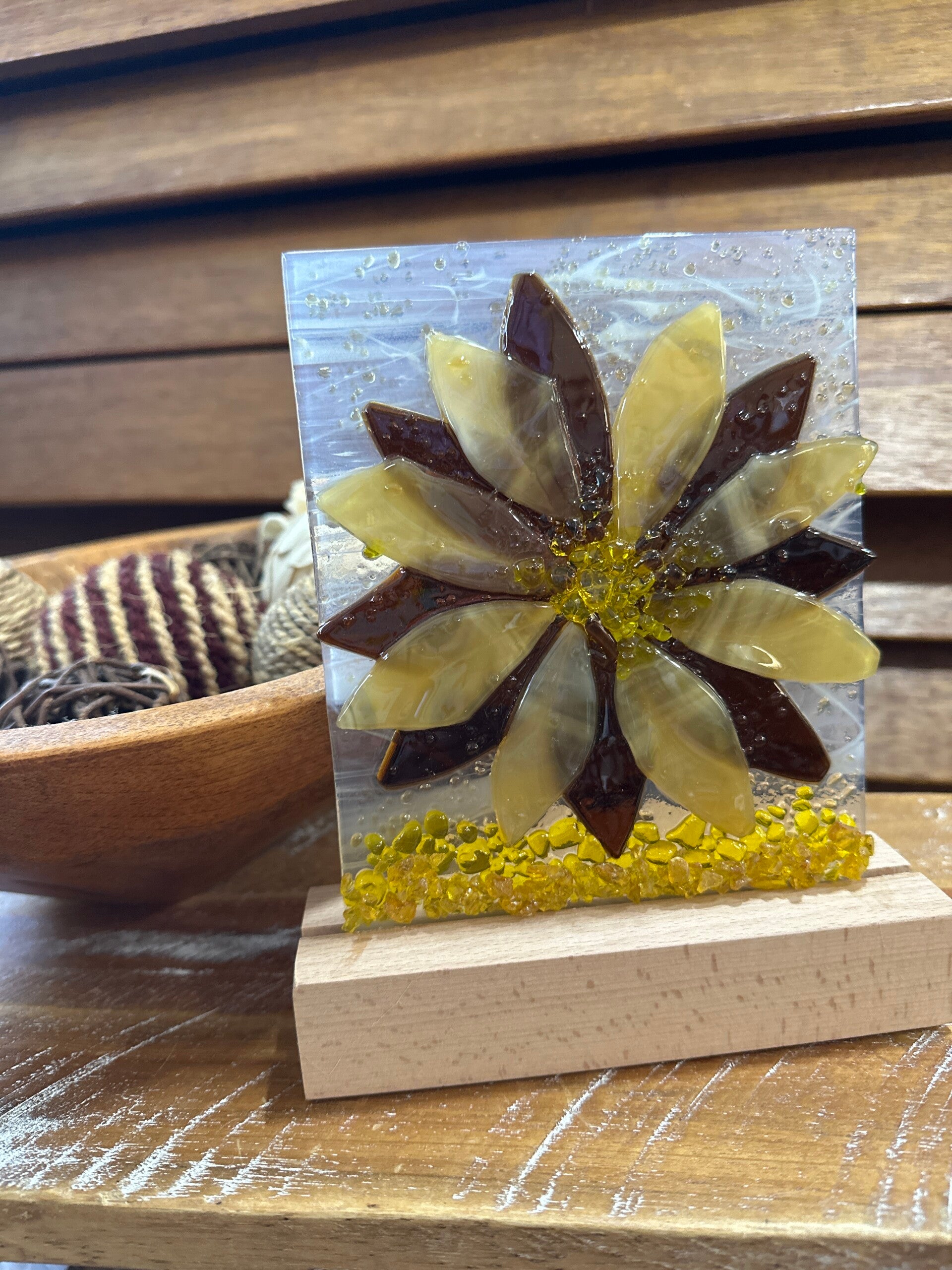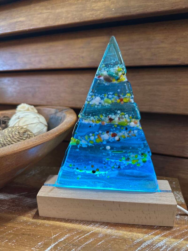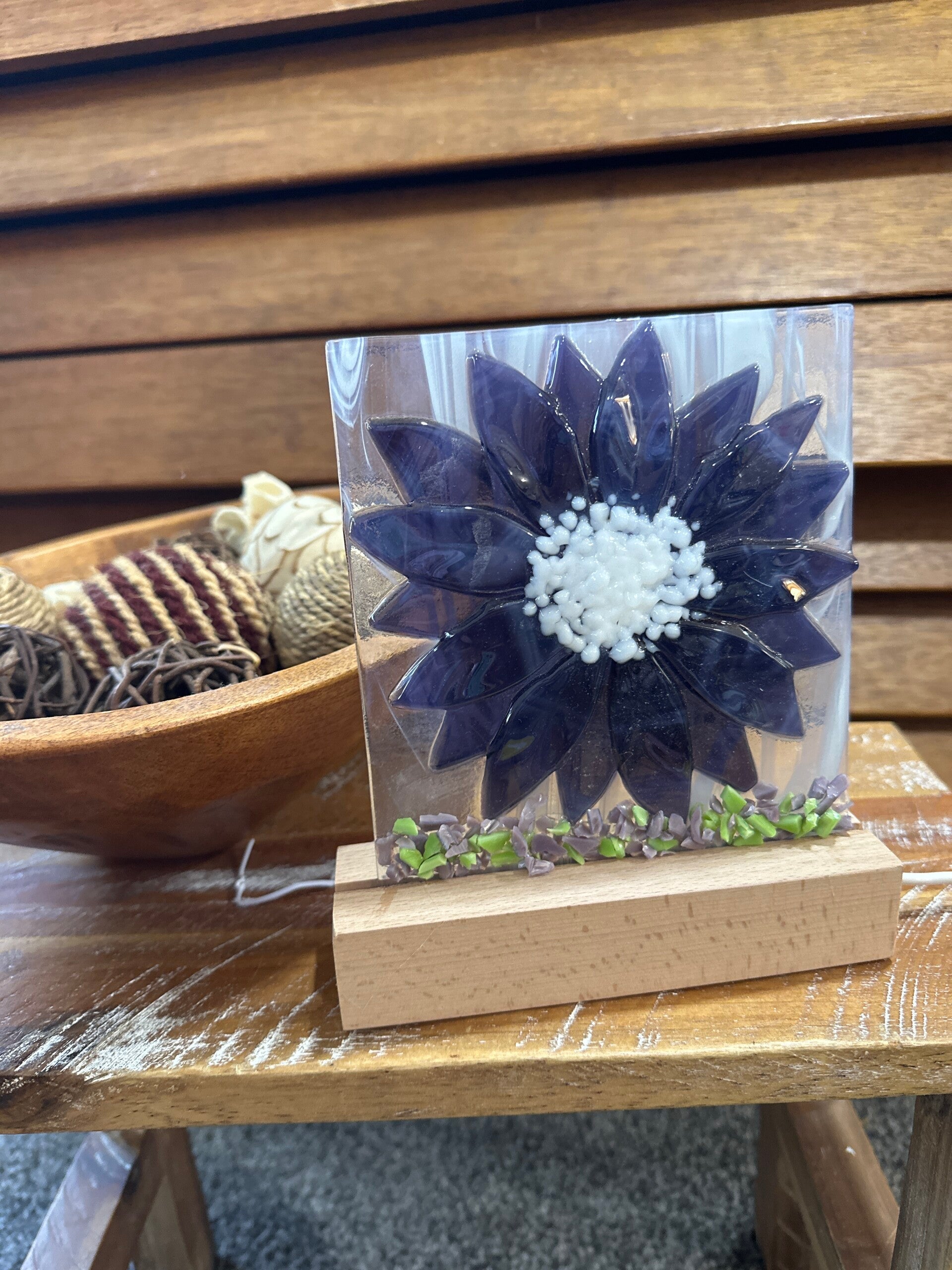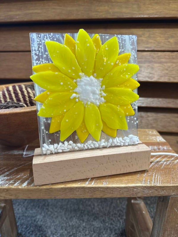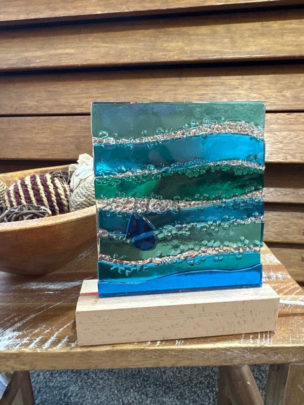 6" Wooden LED Display base. Lights up fused glass panel with USB cable.
