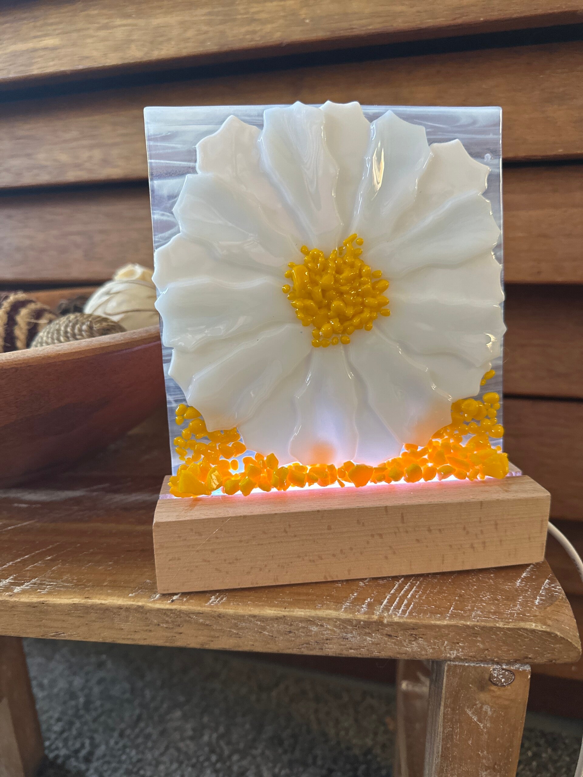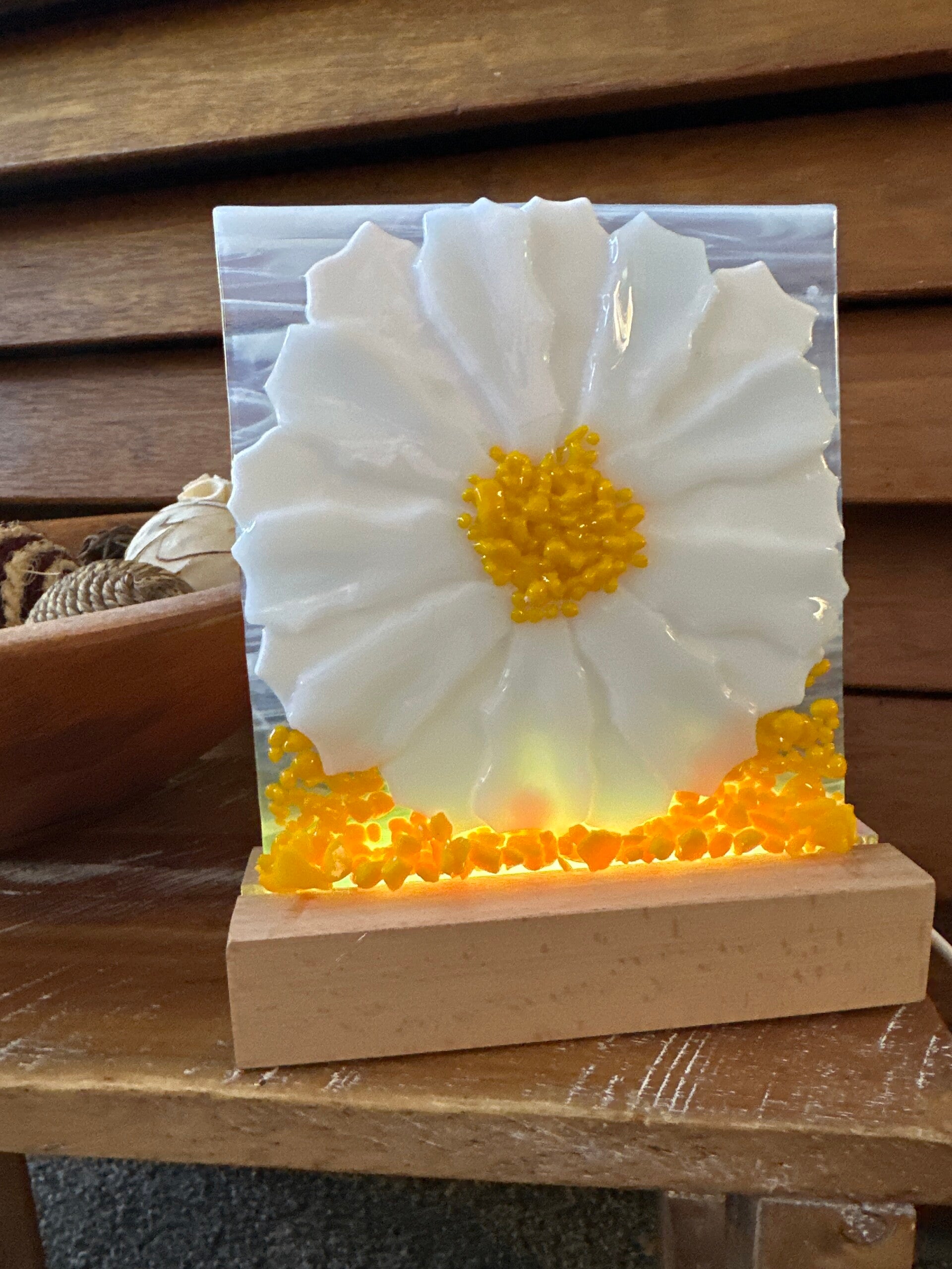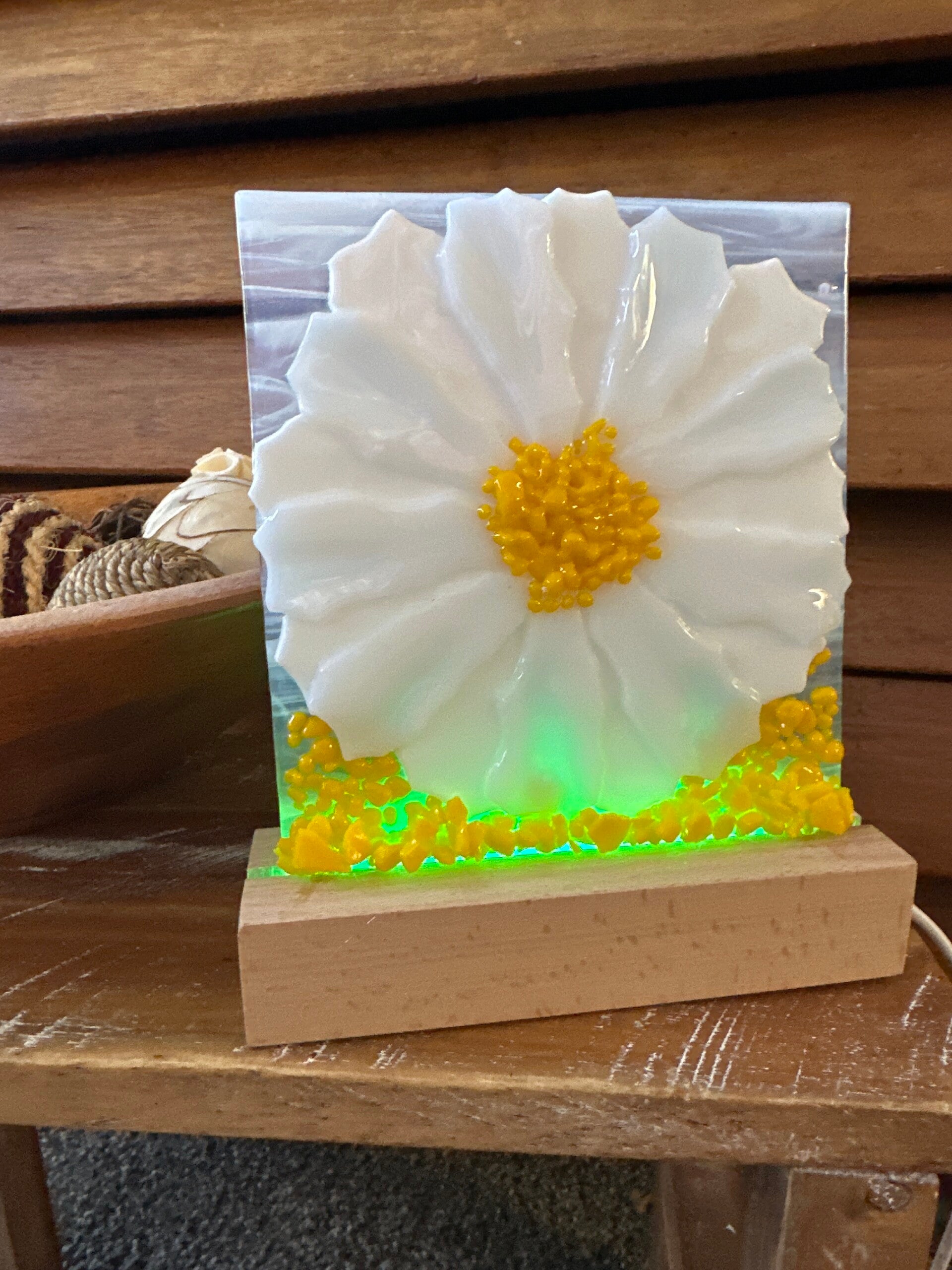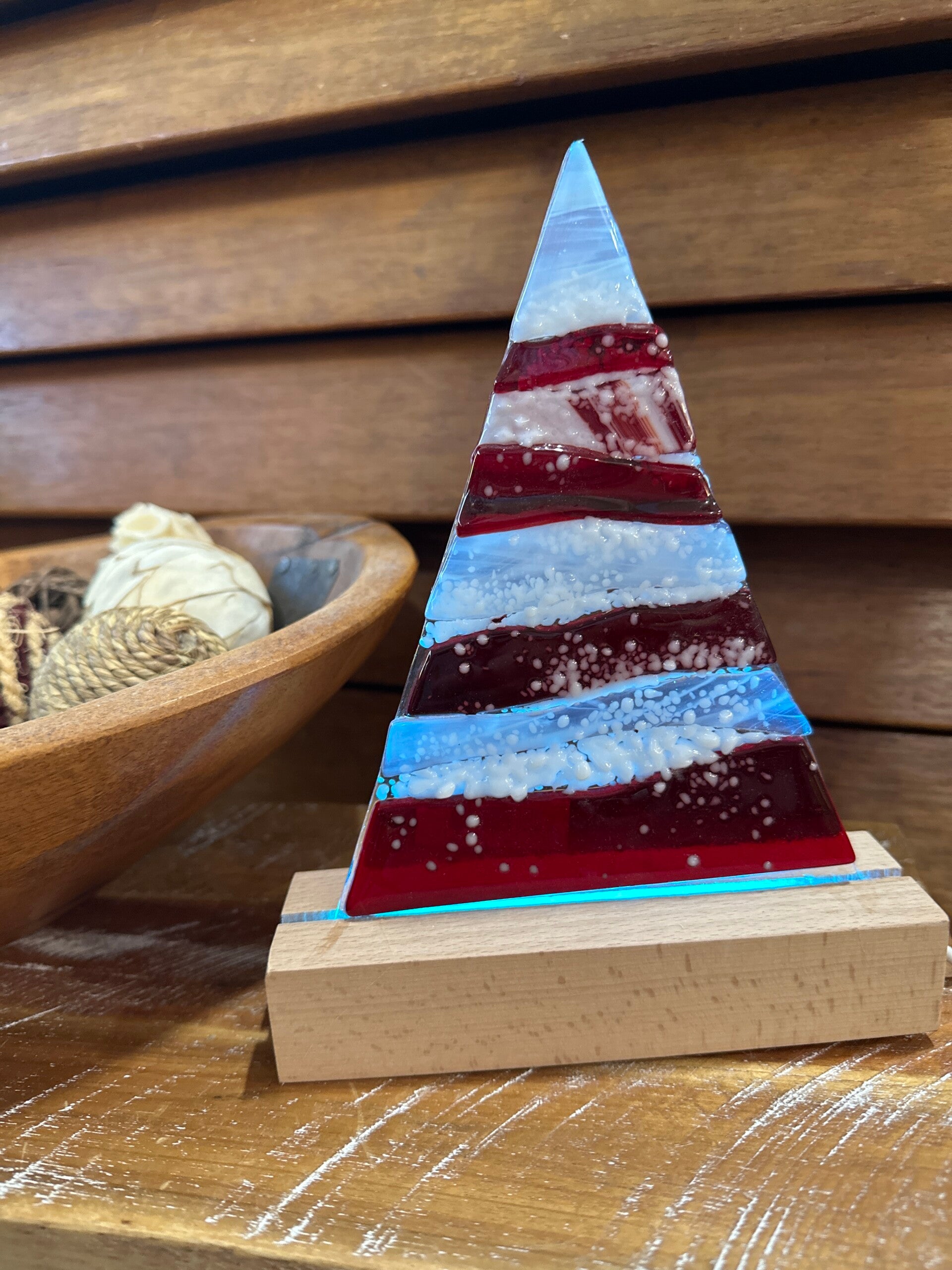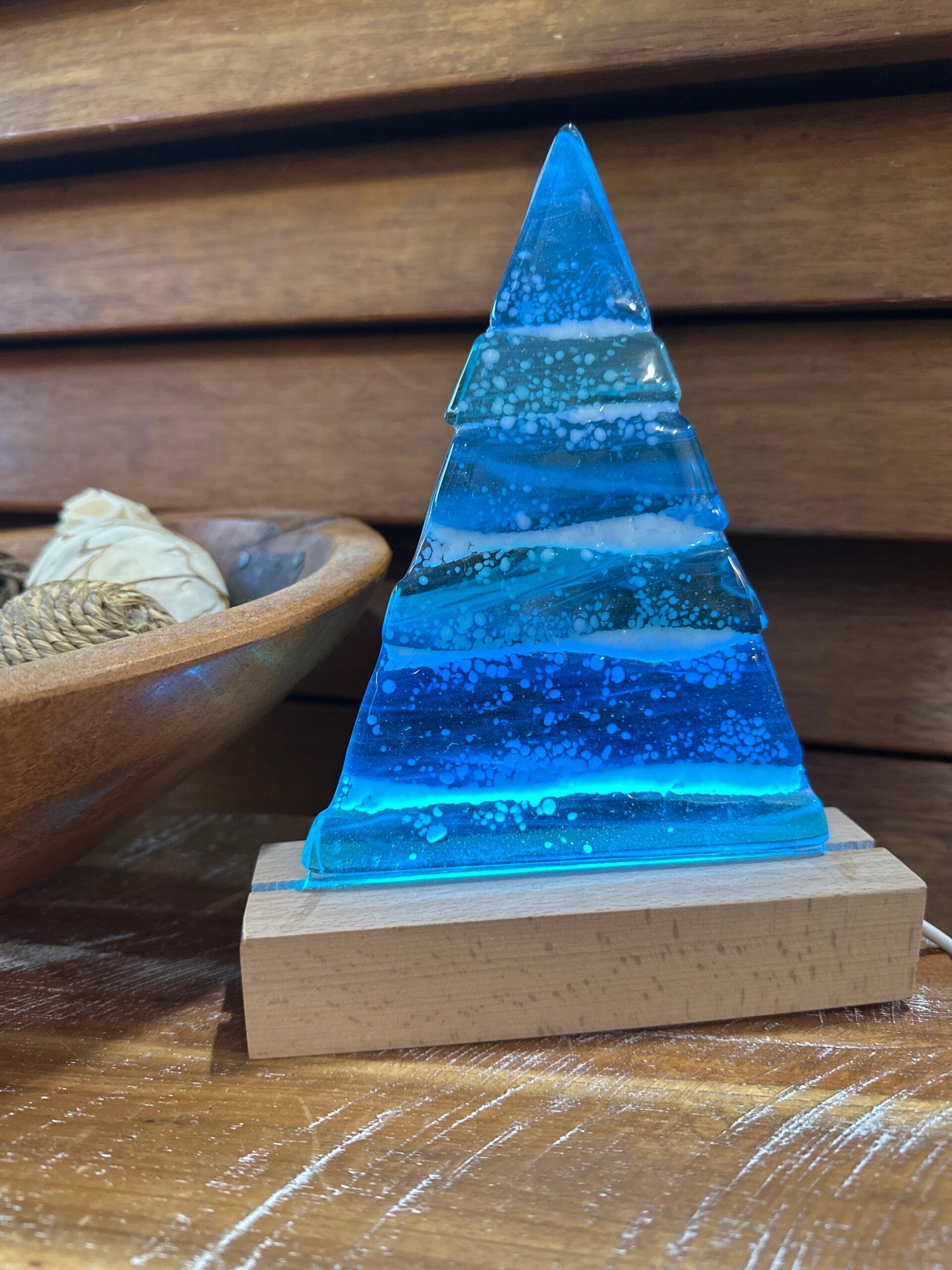 6" Wooden LED Display base. Lights up fused glass panel with USB cable.