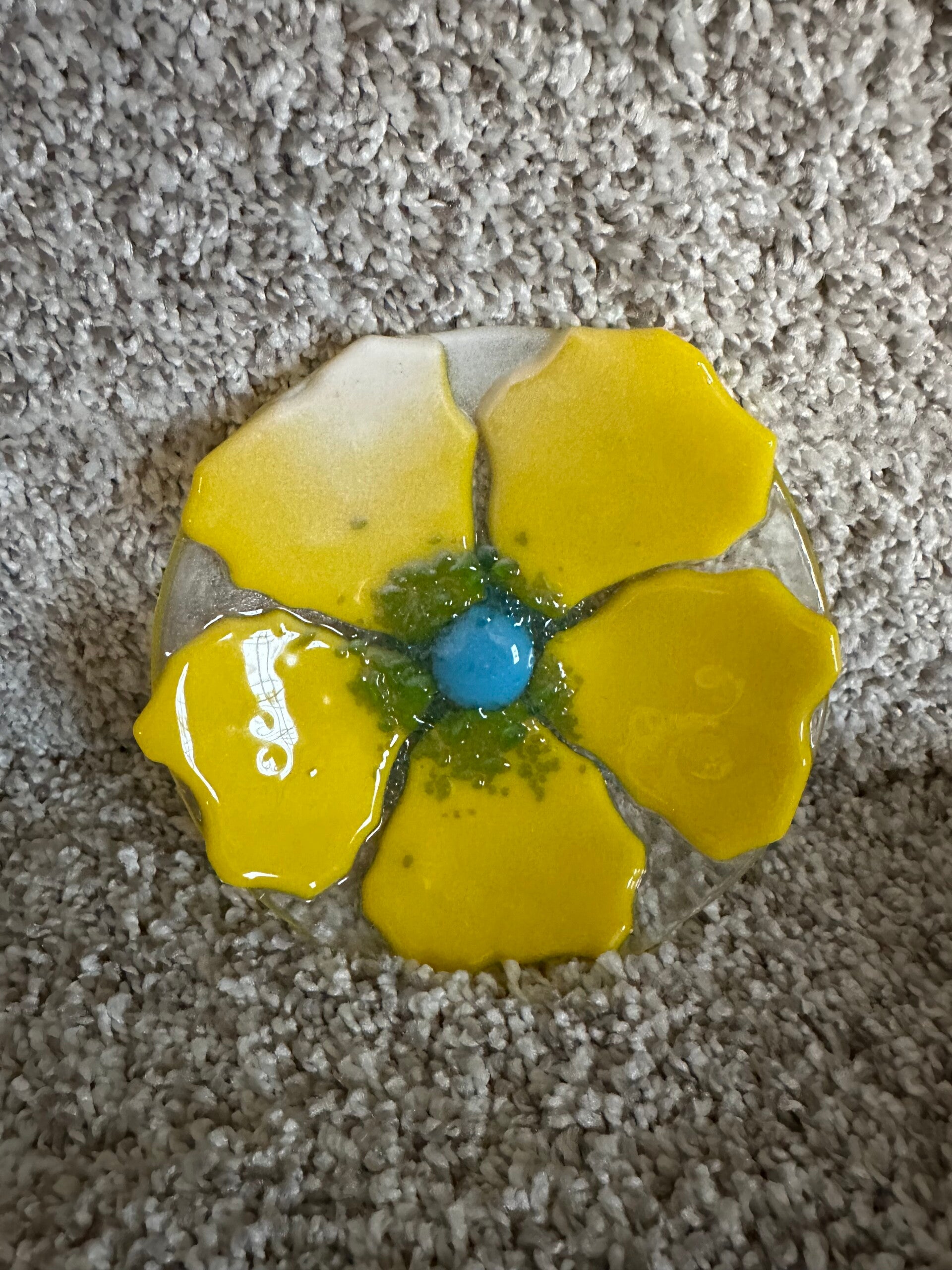 Discover the exquisite Yellow Flower Bowl - a handcrafted trinket bowl featuring vibrant colors. Versatile and charming, it's perfect for keeping track of jewelry.