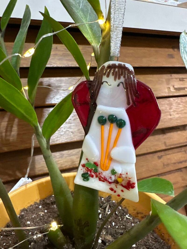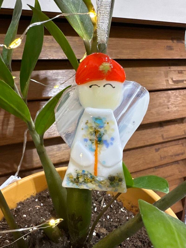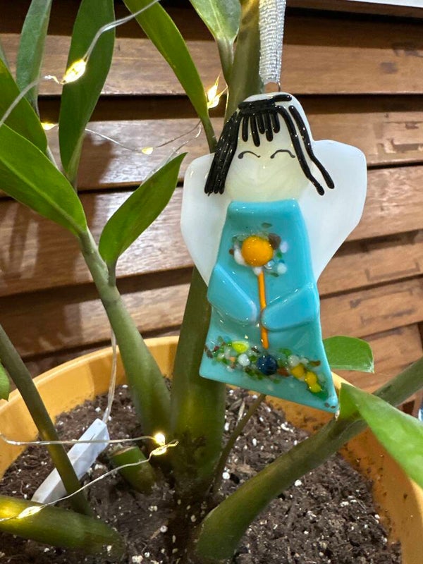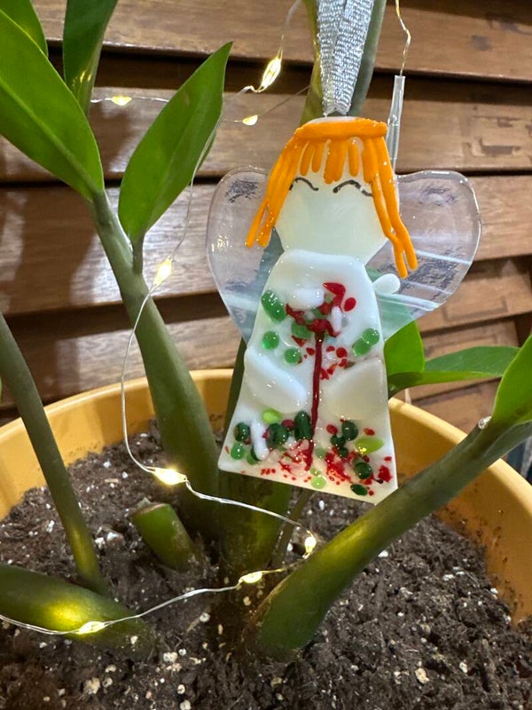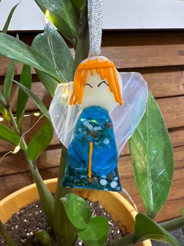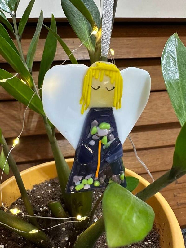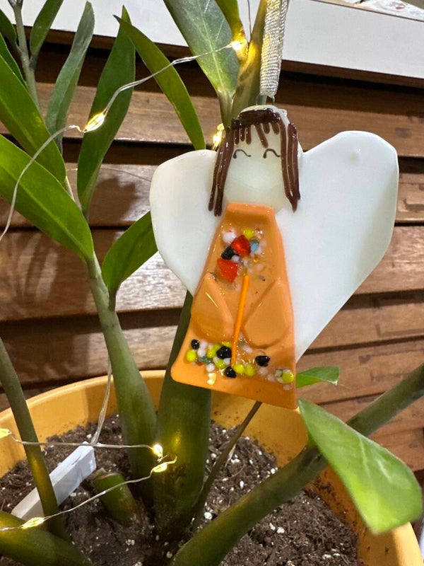 Each angel ornament to for slightly from the pictures due to glass availability at time of creation.