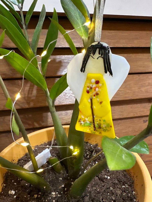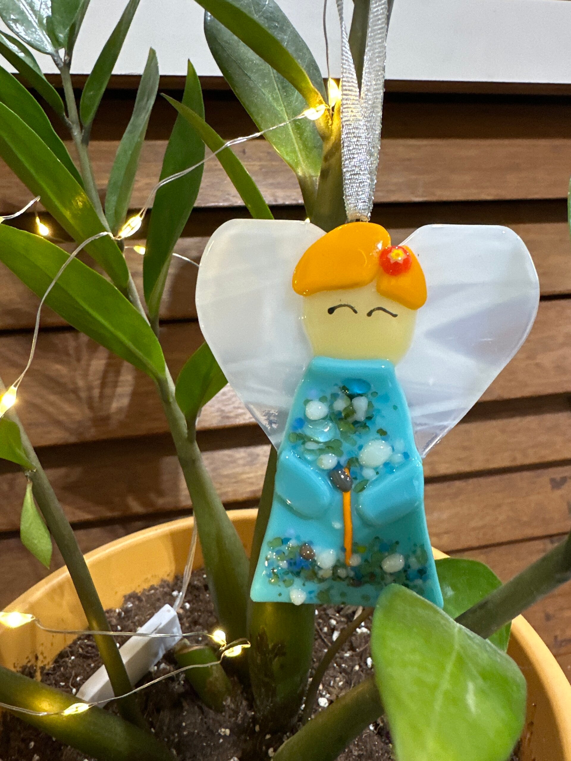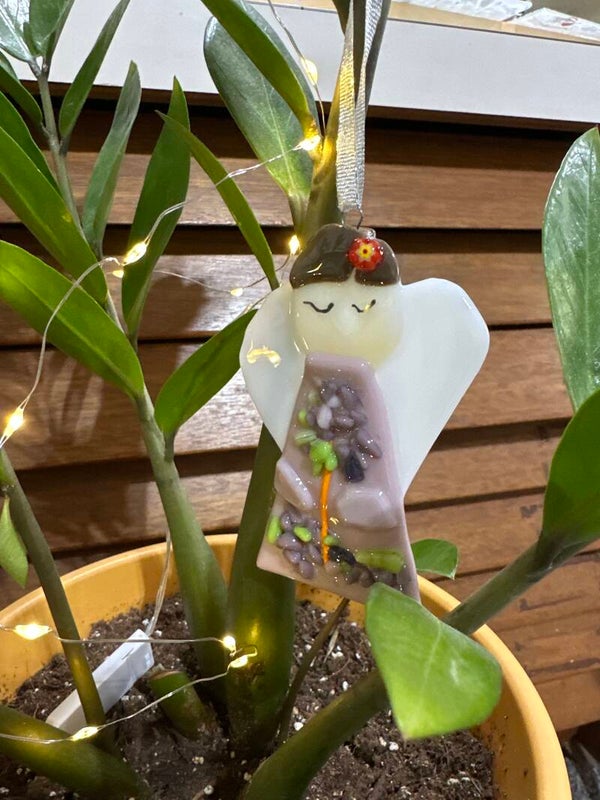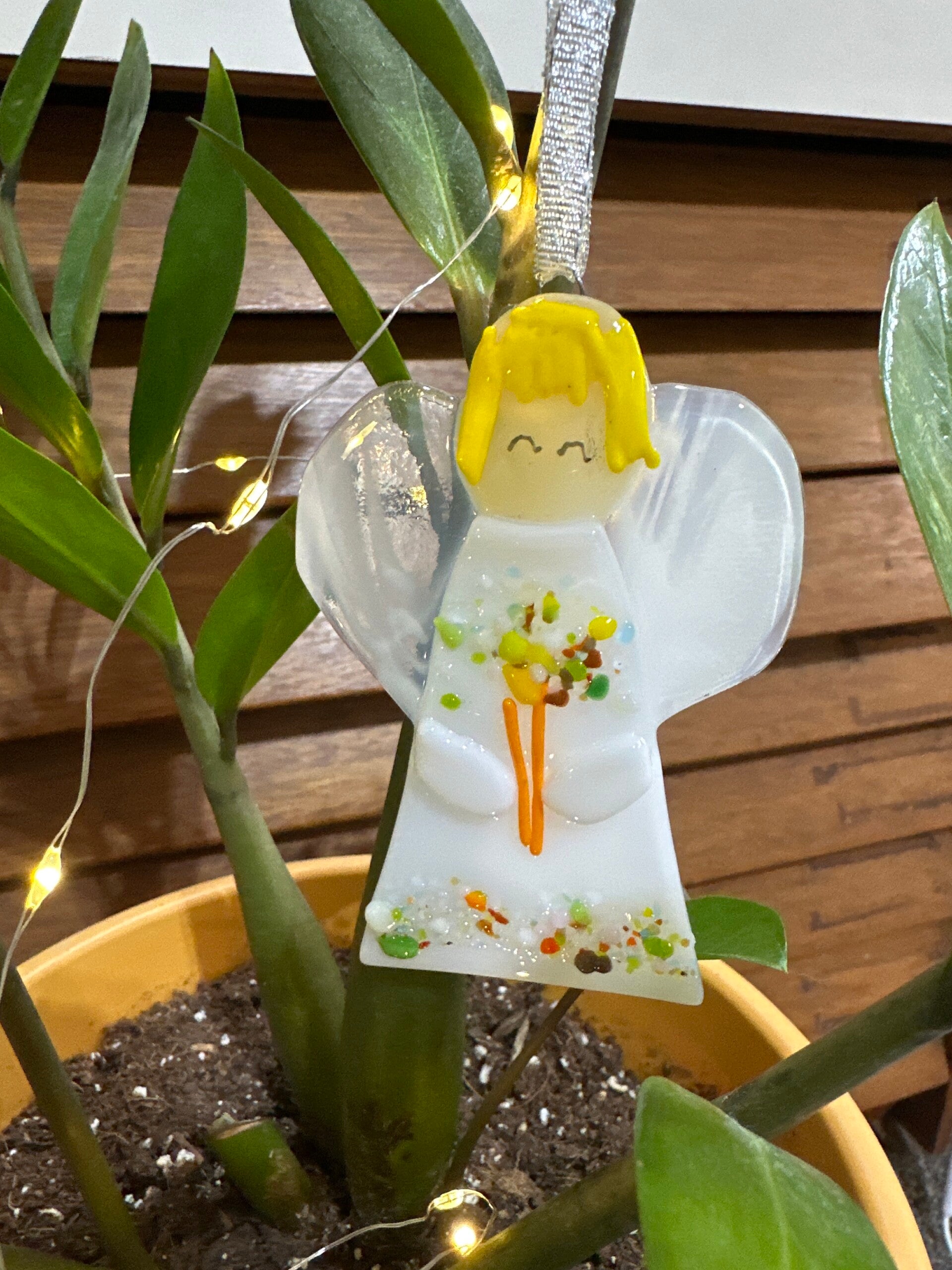 Each angel ornament to for slightly from the pictures due to glass availability at time of creation.